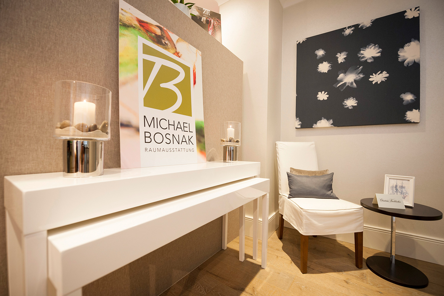 Im Juni 2012 übernahm Michael Bosnak die Firma Deters, bei der er zuvor 30 Jahre angestellt war. Nur ein Jahr später wurde aus Deters Michael Bosnak Raumausstattung. Heute besteht das Team rund um Michael Bosnak aus vier erfahrenen Raumausstatterinnen. Im Team dreht sich alles rund um Stoffe, Muster, Dekoration, Polsterarbeiten, Sonnenschutz, Accessoires und Designteppiche. Wir bieten ein außergewöhnliches Gespür für Gestaltung, Farbe und Formen. Mit viel Leidenschaft, Humor und Stil erarbeiten wir gemeinsam mit Ihnen Ihr individuelles und überraschendes Wohnkonzept.